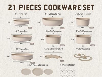The CAROTE 10-piece cookware set is a good choice for those with glass-top stoves. It features a reinforced die-cast aluminum body with a white granite nonstick coating, ensuring the pots and pans are lightweight yet durable. The flat and extended bottom design helps the cookware heat evenly and quickly, which is important for glass-top stoves to avoid hot spots or damage. The set includes a variety of pieces like fry pans, saucepans, a stockpot, and a sauté pan, offering flexibility for different cooking needs. It also comes with useful extras like a spatula and steamer.