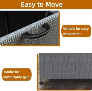 Wheel QualityThe quality of the wheels on a deck box is important for ease of movement. High-quality wheels should be durable, smooth-rolling, and able to handle the weight of the fully loaded box. Look for wheels made from sturdy materials like rubber or heavy-duty plastic. Consider the terrain where you will be moving the box; larger, more robust wheels are better for rough or uneven surfaces, while smaller wheels may suffice for smooth patios or decks. Ensure the wheels are securely attached and can support the box's weight when fully loaded.