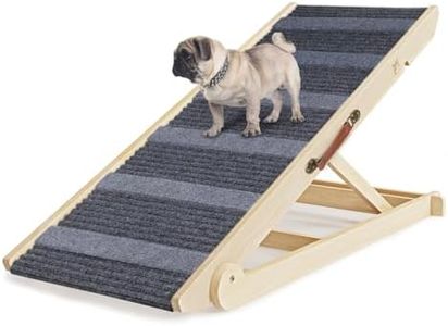 Ramp LengthRamp length determines the angle of the incline your dog will need to navigate. A longer ramp will have a gentler slope, making it easier for your dog to climb. Ramps generally range from 3 to 7 feet in length. For higher surfaces like SUVs or trucks, a longer ramp (5-7 feet) is recommended. For lower surfaces like couches or beds, a shorter ramp (3-5 feet) may be sufficient. Consider your dog's mobility and the height of the surface they need to access when choosing the ramp length.
