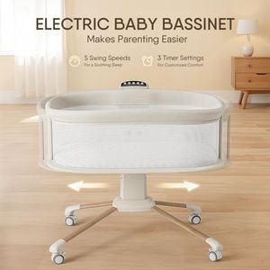 The HALO BassiNest Connected Swivel Sleeper 3.0 is a thoughtfully designed rocking bassinet ideal for parents who want hands-free soothing and close nighttime access to their baby. One of its standout features is the AutoSoothe technology that automatically responds to your baby's cries with customizable rocking, vibration, and soothing sounds, which can be a great help during sleepless nights. The 360° swivel base is very convenient, allowing you to easily bring the bassinet close to your bed for feeding or comforting without strain. The patented easy lowering wall is especially useful for moms recovering from C-sections, providing gentle access without needing to get out of bed.